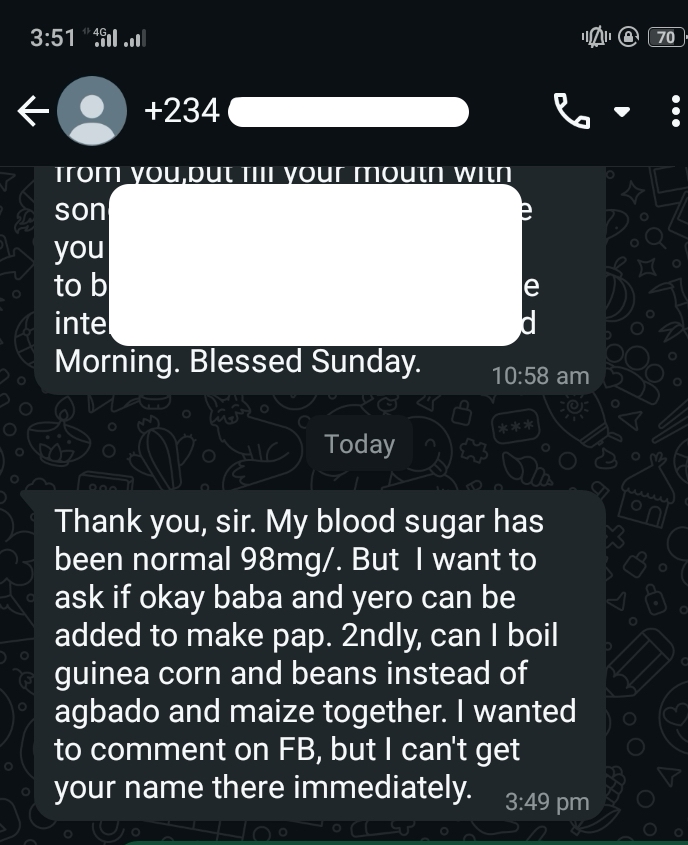 I never thought treating diabetes would be this simple. I've never used anything that is effective as this method. The only regret is not meeting you earlier.